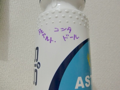 2009-07-01 モトジアニキからの誕生日プレゼント days 全日本の会場で、モトジアニキ(id:motog)から誕生日プレゼントをいただきました。すでにモトジアニキのダイアリーでも紹介されているアスタナのボトル、しかも選手のサイン入り。 コンタドールのサインが向かって右側に。 左側にはLanceのサインが。 昔からひいきにしているPopovychのサインがないのが惜しいけど、アニキ、ありがとう!